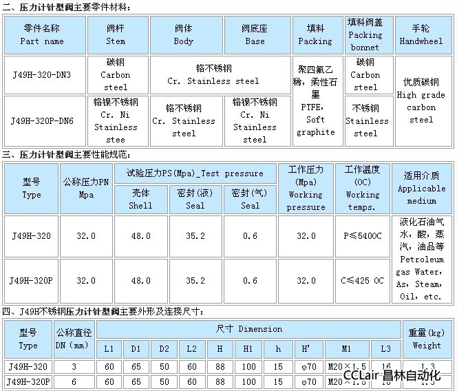 针型阀是一种可以精确调整的阀门用途较广,比如火焰切割用的割距,调整火焰温度的旋钮就是针型阀,仪表针型阀是仪表测量管路系统中重要组成部分,主要有截止阀和球阀,其功用是作开启或切断管道通路用。任何阀门的作用都是为了切断流体. 根据阀芯的不同,可以分为截止阀,闸板阀,旋塞阀,球阀,碟形阀,针型阀等等. 针型阀的阀芯就是一个很尖的圆锥体,好象针一样插入阀座,由此得名. 针型阀形比其他类型的阀门能够耐受更大的压力,密封性能好,所以一般用于较小流量,较高压力的气体或者液体介质的密封.针型阀形与压力表配合使用是最合适的了.一般的针型阀形都做成螺纹连接