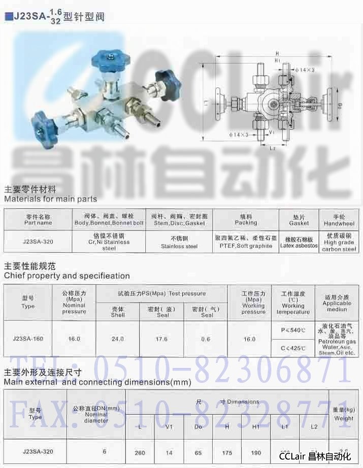 J23SA-160,J23SA-320,外螺纹针型阀组合阀