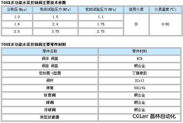 700X多功能水泵控制阀由主阀、电磁导阀、针阀、球阀、单向阀、行程开关、微形过滤器和压力表组成水力控制接管系统。水泵需停止工作时,先由进口压使主阀关闭90%后,水泵停止运转。剩余10%由回水关闭。可防止水锤现象发生。