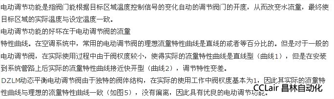DZLM-16动态平衡电动调节阀是动态平衡与电动调节一体化的产品,主要适用于暖通空调系统末端空调设备(如空调箱、新风机组、空气处理机)的温度控制,通过配置智能模块控制装置,可方便的对各环路的流量、温度进行自动控制,实现合理利用能量,节能降耗,智能化管理。应用此阀使末端设备只受标准控制信号的影响,而不受系统压力波动的影响,使系统调节更稳定、更节能,特别适用于系统负荷变化较大的变流量系统中。
