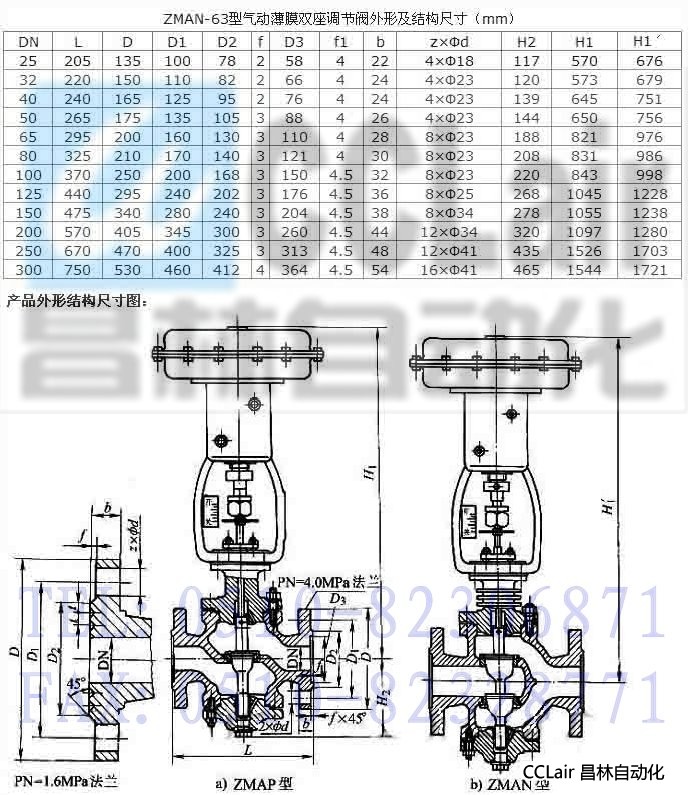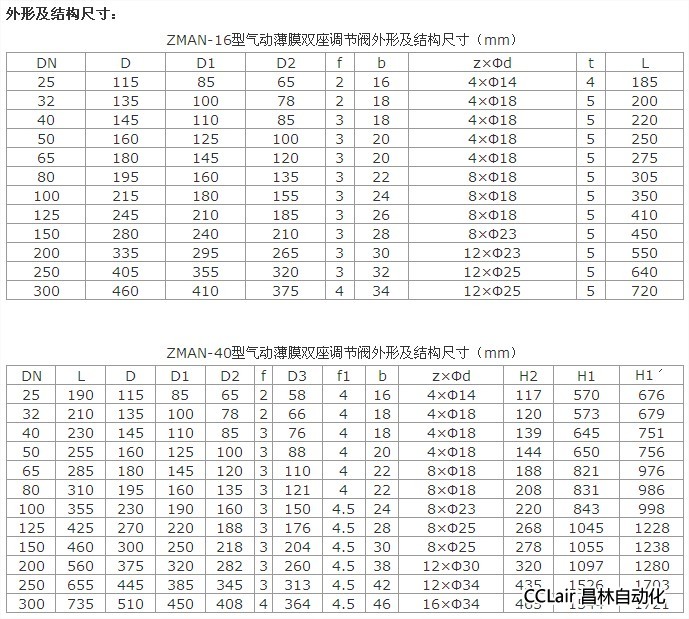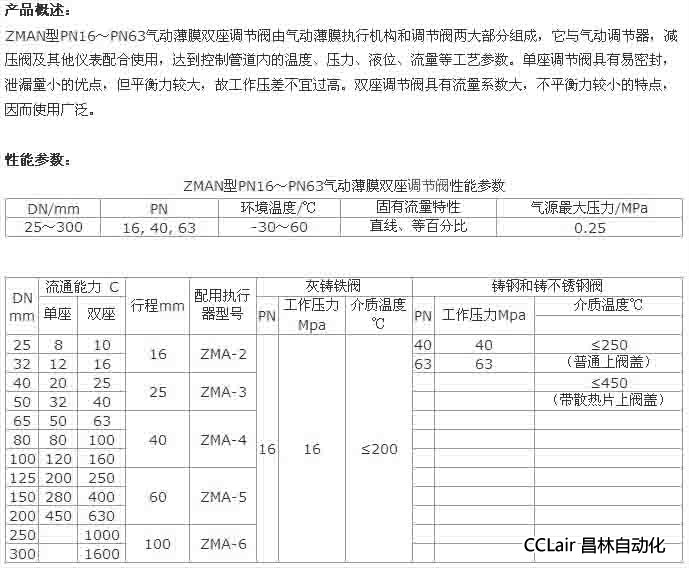 ZMAN-16,ZMAN-40,ZMAN-64,气动薄膜双座调节阀