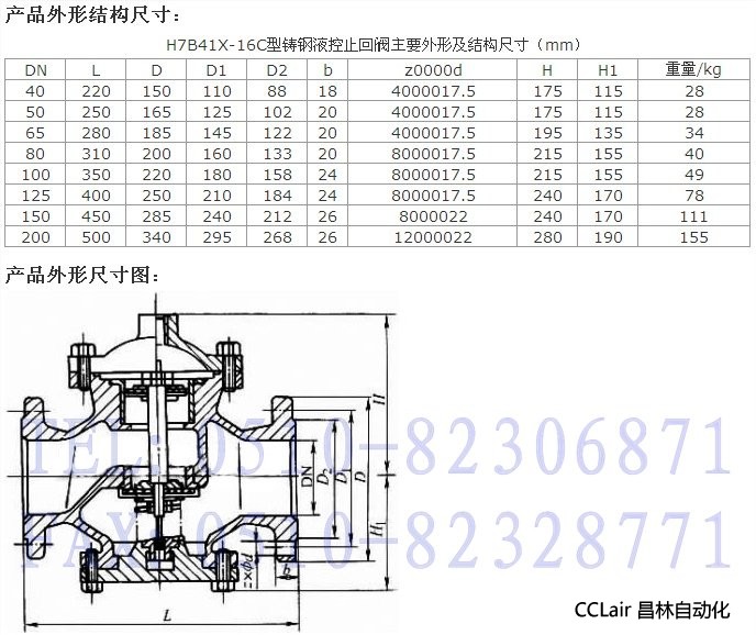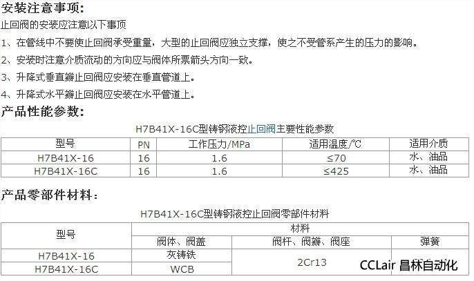H7B41X-16,H7B41X-16C,铸钢液控止回阀