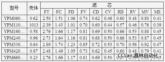 4、额定流量下的清洁滤芯压降(单位:1×105Pa 介质参数:30mm2/s 0.86kg/dm3)