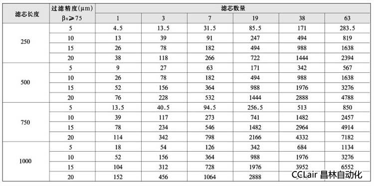 4、推荐流量 (单位:L/min 介质:水 初始压降:7kPa)
