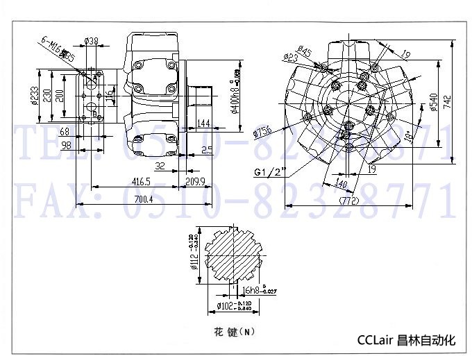 (1)结构简单。由于去掉连杆等传动零件,使结构大为简化; 型号 TYPE UNIT MRC5400 排量 DISPLACEMENT 公称排量 Nominal displacement L/r 5.40 理论排量 Displacement L/r 5.4012 扭矩 TORQUE 理论单位扭矩 Theoretical specific Toque ×10-5 N.m/Pa 86.01 公称扭矩 Nominal torque N.m 15473 压力 PRESSURE 最大连续输入压力 Max.Continuous input pressure ×105Pa 180 最大间断输入压力 Max.Intermittent input pressure ×105Pa 210 峰值压力 Max.peak input pressure ×105Pa 250 最大压力差 Max.pressure difference ×105Pa 210 最大内腔压力 Max.Intracavity pressure ×105Pa 5 转速 SPEED 最大转速 Max.Speed r/min 150 功率 POWER 最大功率 Max.Continuous Power kw 169 重量 Weight Kg 550
