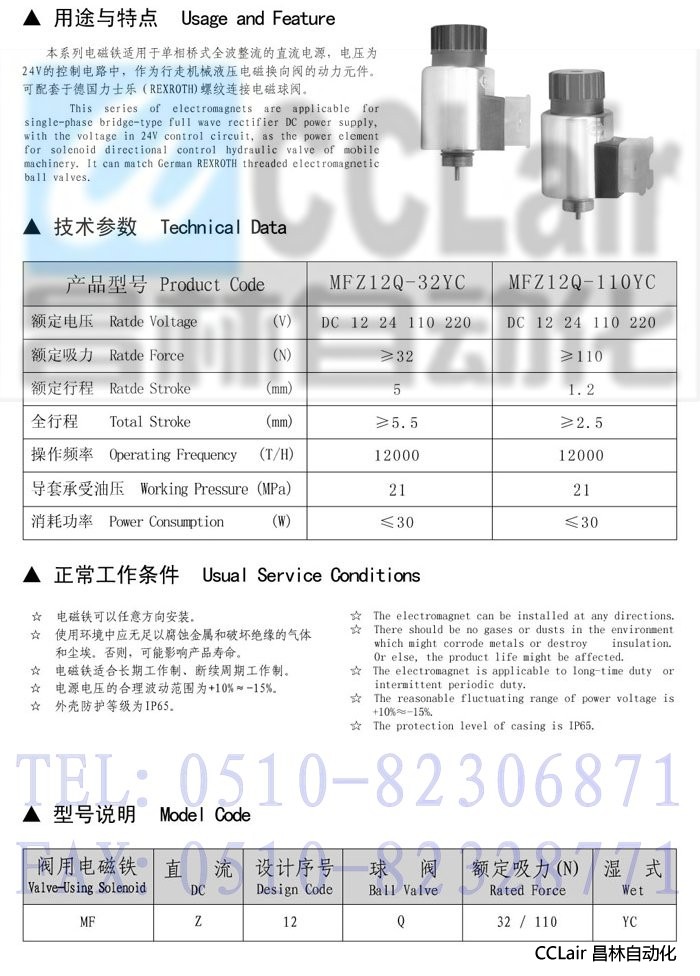 MFZ12Q-32YC,MFZ12Q-110YC,直流湿式阀用电磁铁