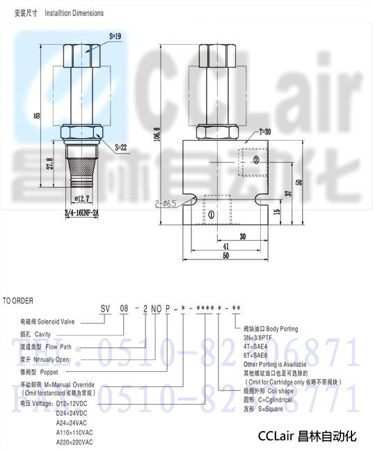 SV-08-2NCP,电磁换向