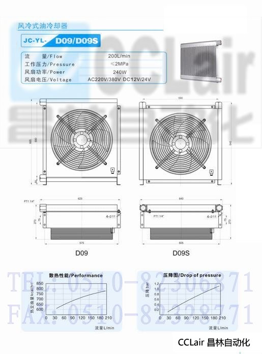 JC-YL-D09,JC-YL-D09S,风冷式油冷却器