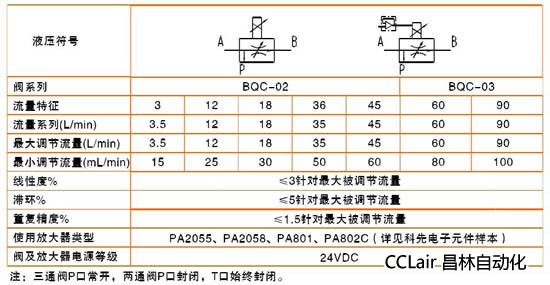 BQC系列比例流量阀与比例放大器协同工作,使阀的调整量和放大器的输入信号相对应,该系列阀尽量选用带集成放大器的阀。保证阀的性能参数处于最优化的调整状态。