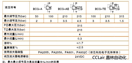的驱动电流,校准阀的调整量,使阀的调整压力与放大器的输入信号成正比。BCG系列比例溢流阀一般作为先导控制阀