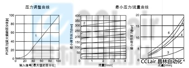 注:1=流量在1 L/min时测得的压力调整曲线;2=流量在1 L/min时使输入信号变化测得:3=O输入信号时BCG-A02-