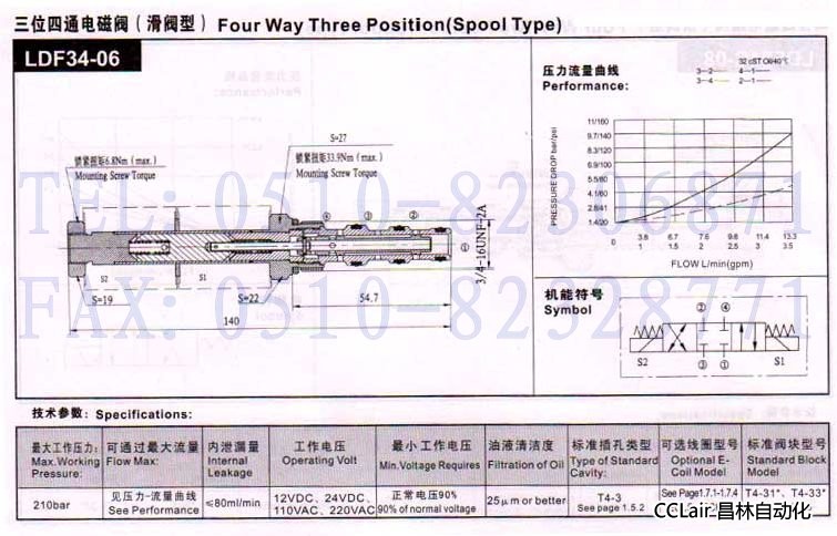 LDF34-06,三位四通电磁阀