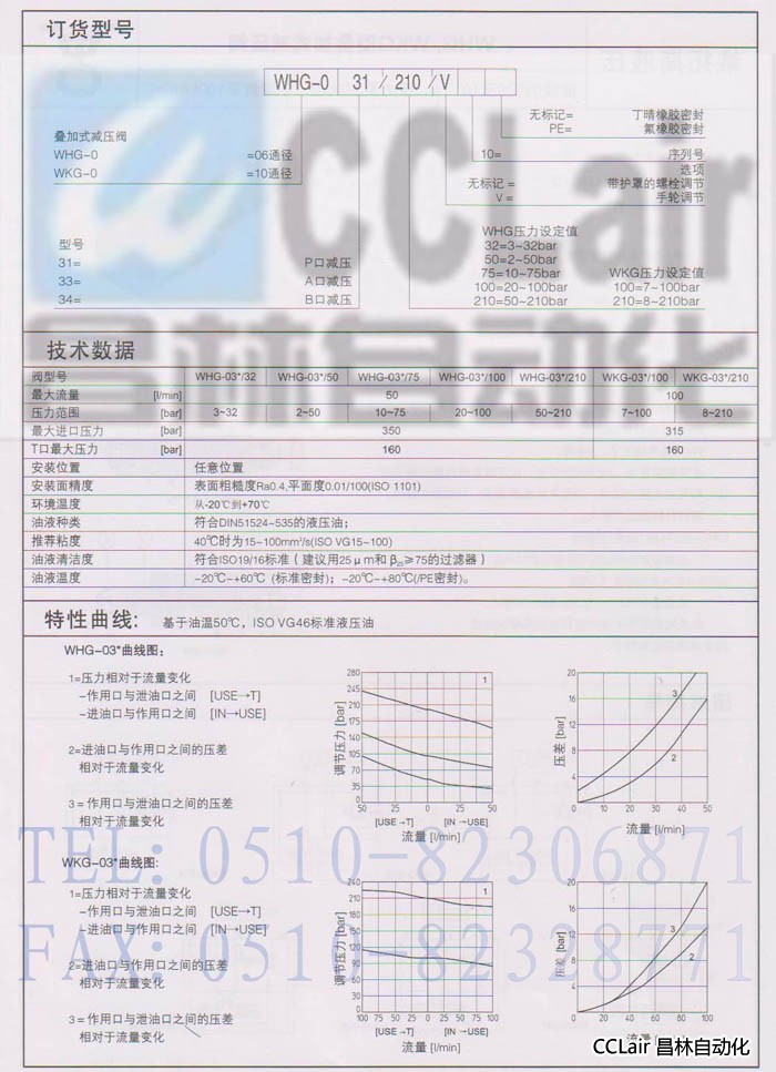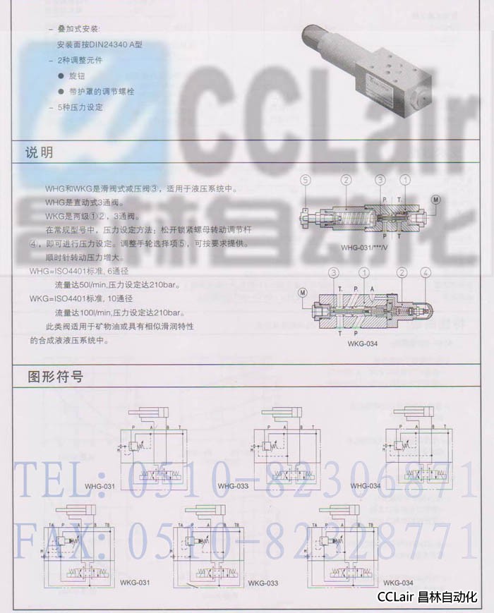 减压阀 WHG-O33/100 WHG-O33/210 WHG-O34/32 WHG-O34/50 WHG,WKG型叠加式减压阀