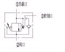 此阀允许液流从②到①自由流动,同时阻止其反向流动,若先导 口③压力按比例增加,则①到②流量也按比例增加。