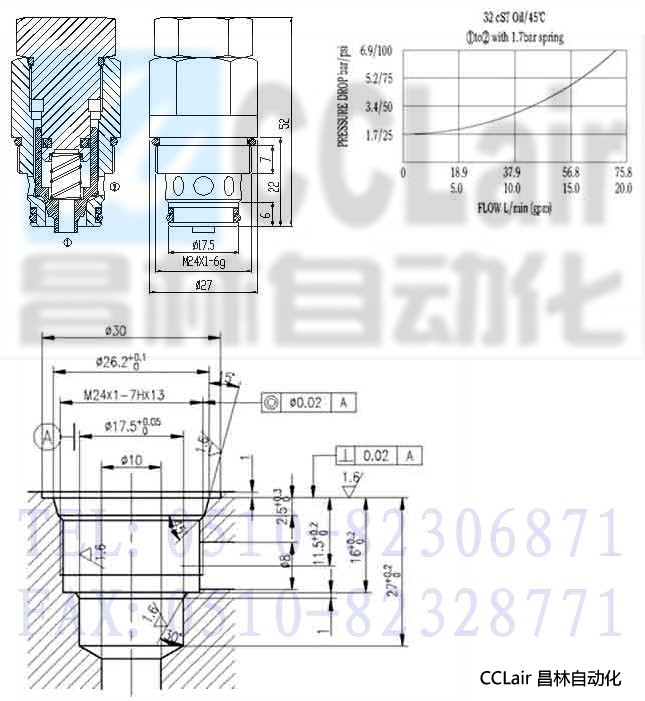 此阀使用时,允许液流以很低的压力降从①口 到② 口,同时阻止液流从② 口到① 口.