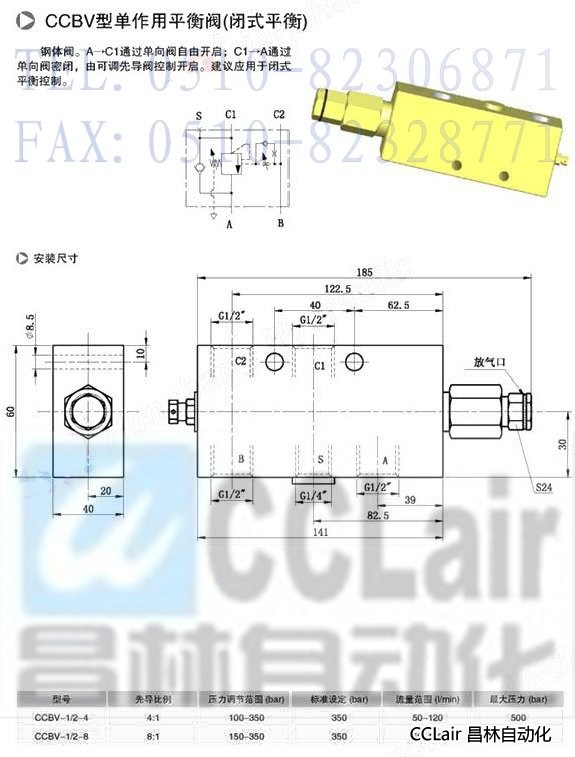 CCBV-1/2-4,CCBV-1/2-8,CCBV-3/4-4,CCBV-3/4-8,单作用平衡阀(闭式平衡)