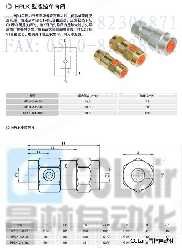 HPLK-3/8-38,HPLK-1/2-50,HPLK-3/4-100,液控单向阀