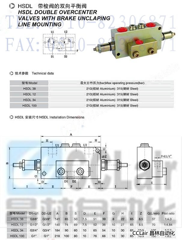 HSDL 38,HSDL 12,HSDL 34,HSDL 100,带梭阀的双向平衡阀
