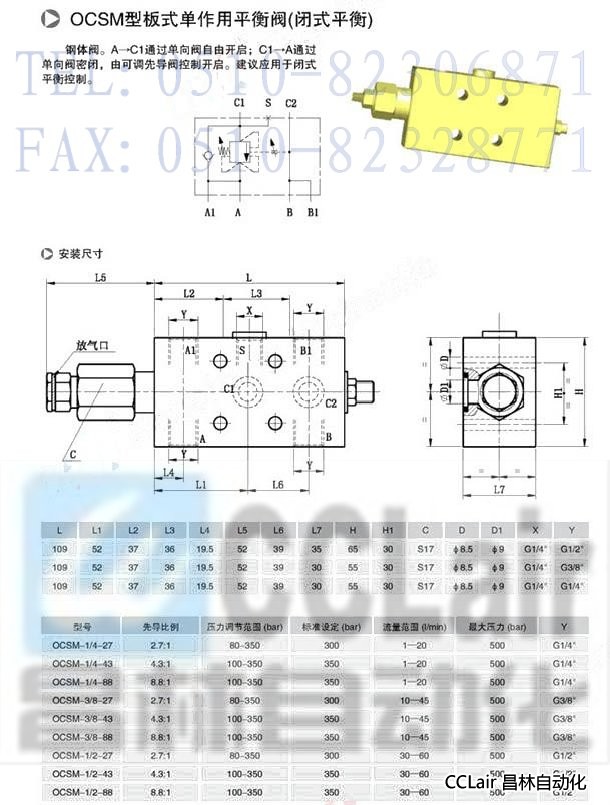 OCSM-1/4-27,OCSM-1/4-43,OCSM-1/4-88,板式单作用平衡阀(闭式平衡)