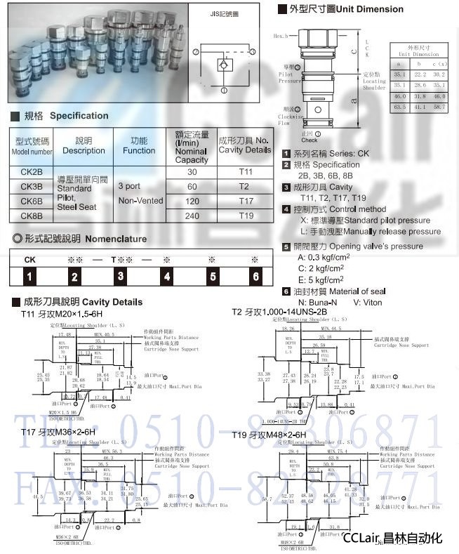CK2B,CK3B,CK6B,CK8B,插式液控单向阀