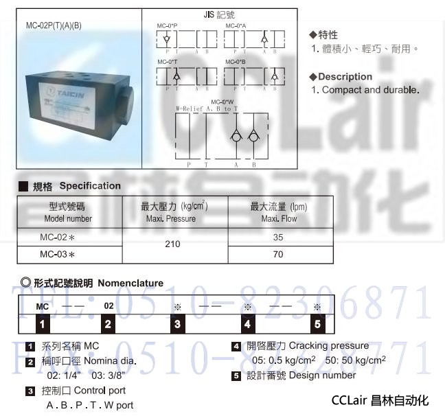 MC-02A,MC-02B,MC-02P,MC-02T,MC-02W,积层式止逆阀
