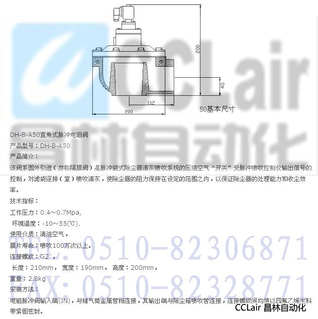 DH-B-A50,直角式脉冲电磁阀