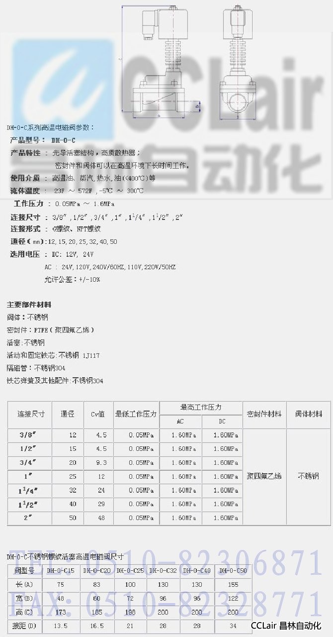 DH-O-C15,DH-O-C20,DH-O-C25,DH-O-C32,DH-O-C40,DH-O-C50,超高温电磁阀