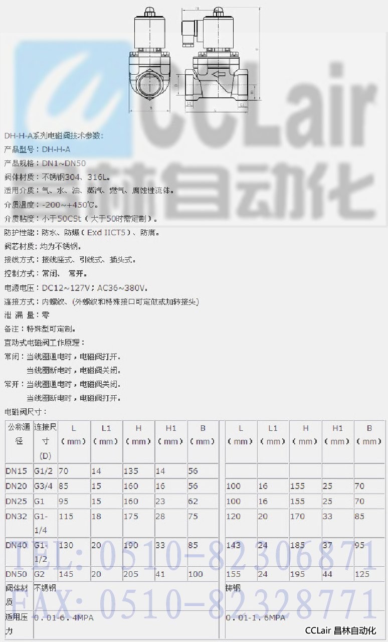 DH-H-A15,DH-H-A20,DH-H-A25,DH-H-A32,DH-H-A40,DH-H-A50,直动式电磁阀