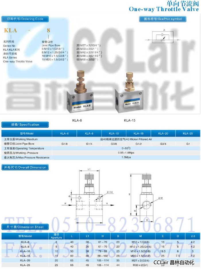 KLA-6,KLA-8,KLA-10,KLA-15,KLA-20,KLA-25,单向节流阀
