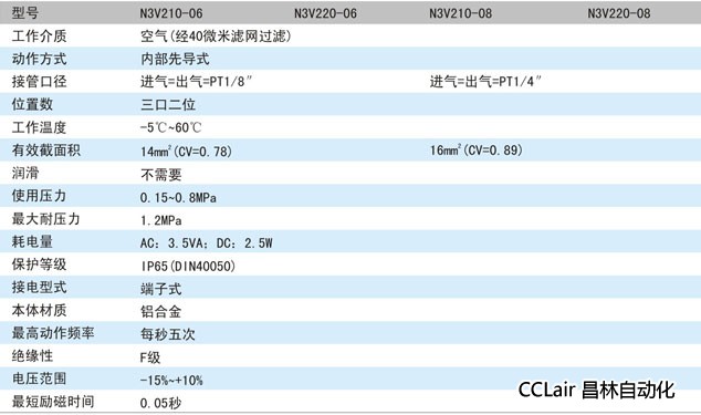 质为经过过滤干燥的清洁空气、工作压力为0.15~0.8MPa。N3V200系列电磁阀广泛应用于气动系统中,