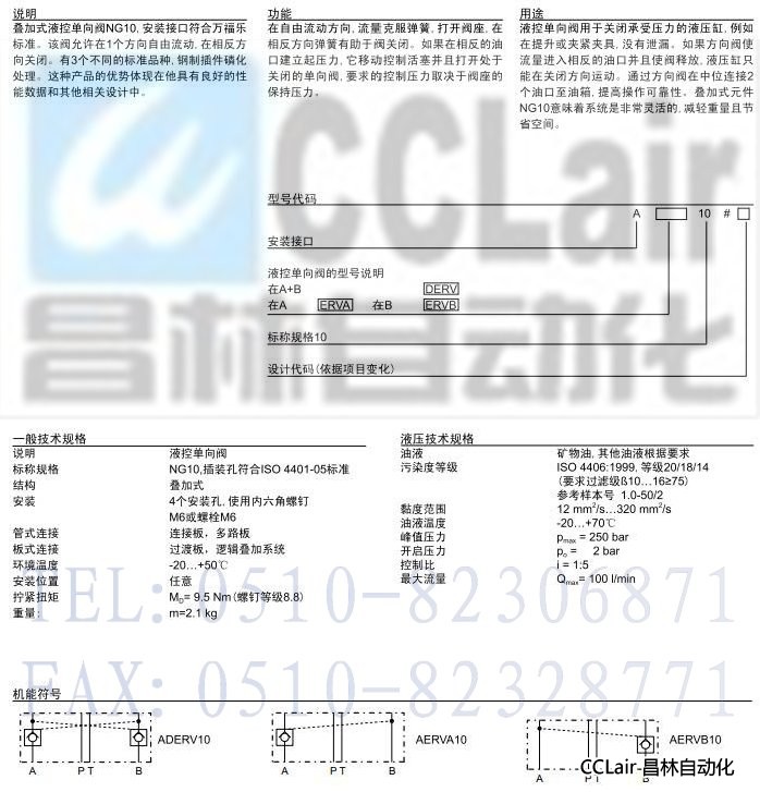 ADERV10,AERVA10,AERVB10,叠加式液控单向阀