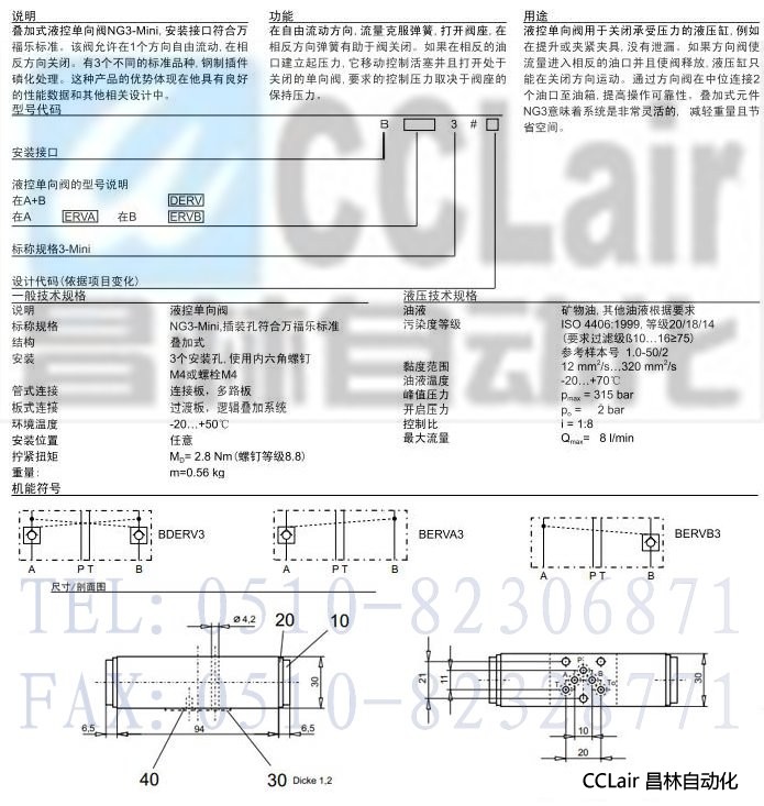 BDERV3,BERVA3,BERVB3,叠加式液控单向阀