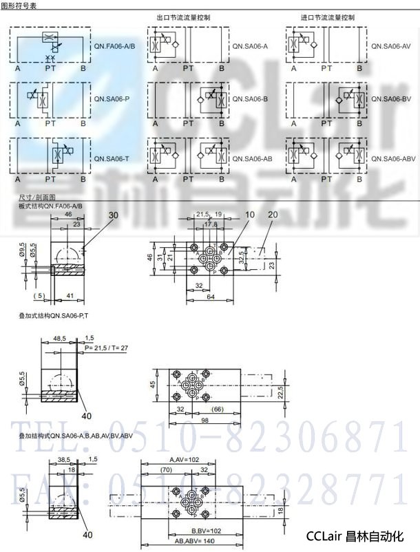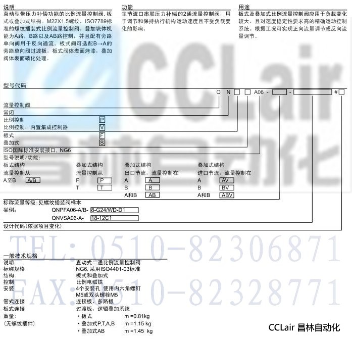 QNPFA06-A/B,QNPSA06-A,QNPSA06-B,板式和叠加式比例 2-通流量控制阀