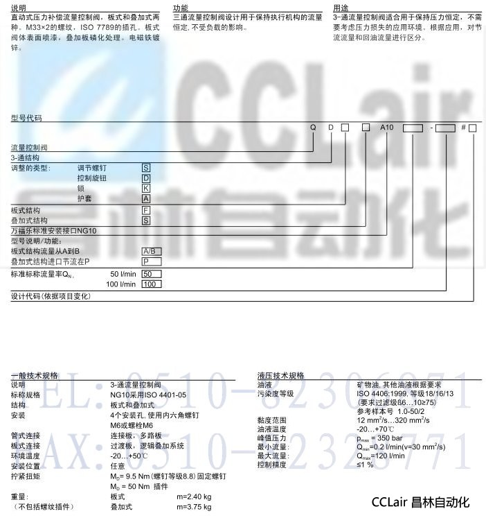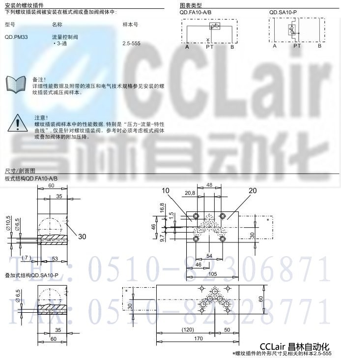 QD.SA10-P,QD.FA10-A/B,3-通板式和叠加式流量控制阀