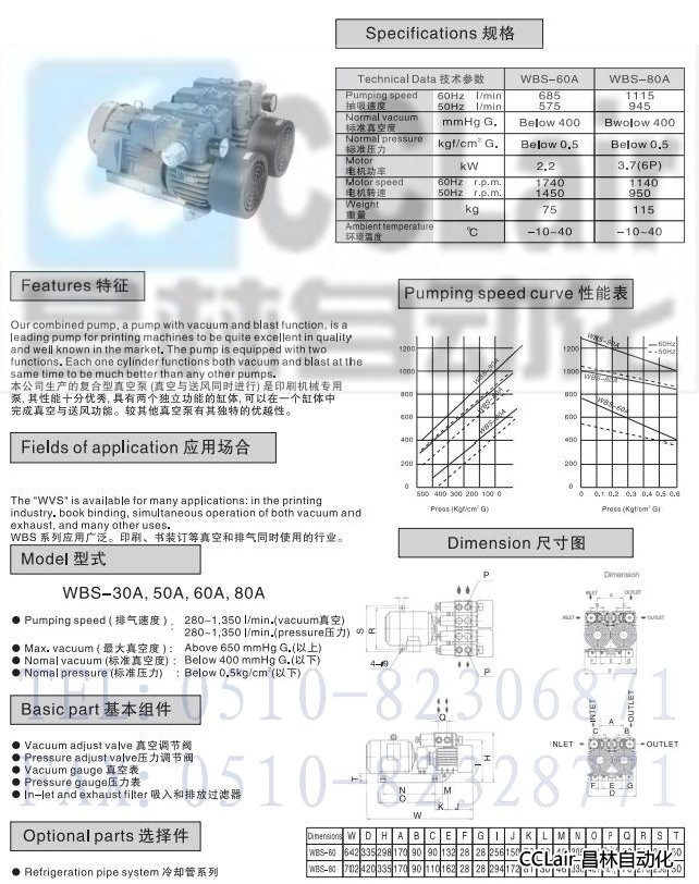 WBS-60A,WBS-80A,复合型真空泵