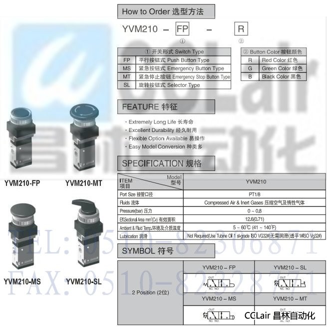 YVM210-FP,YVM210-SL,YVM210-MS,YVM210-MT,3通机械阀