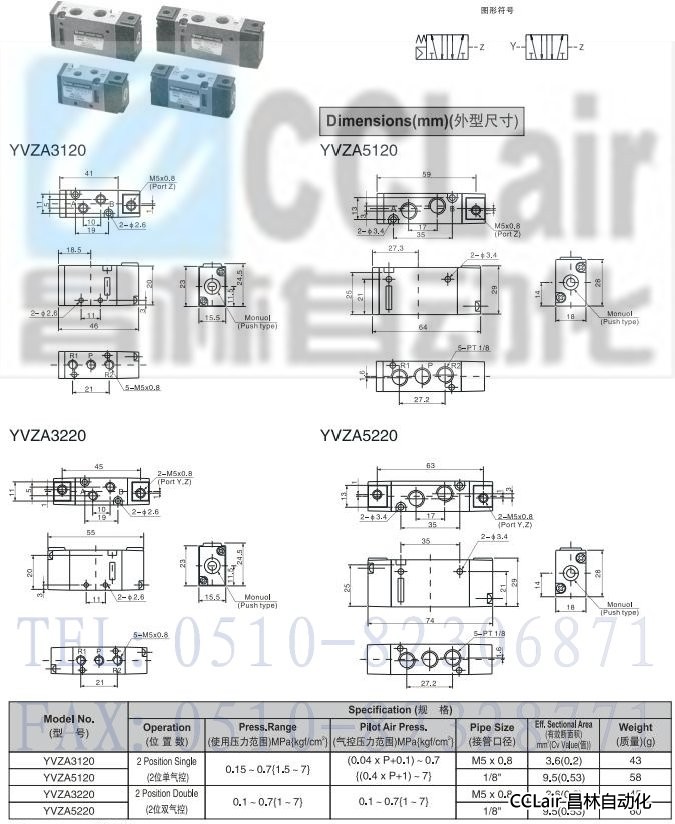 YVZA3120,YVZA5120,YVZA3220,YVZA5220,5通气控阀