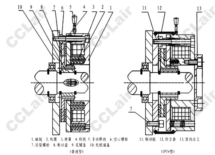 3、当制动器装在电机上,若电机起动困难或有噪音时,应检查制动器,按本《说明书》第三条调整。
