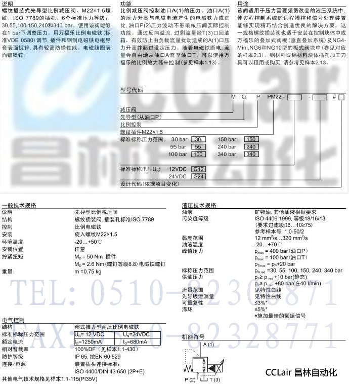 MQPPM22,MQPPM22-30G24,MQPPM22-30G24-A1,先导式比例减压插装阀