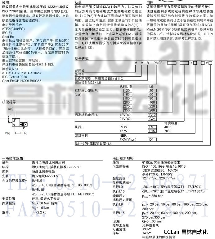 MVBPM22,防爆型先导式比例减压插装阀 Ex d II C