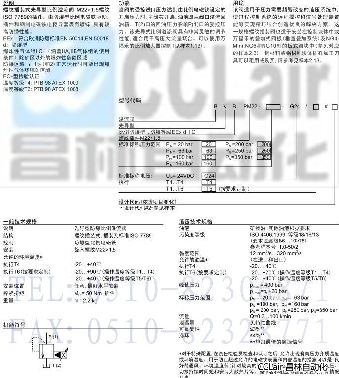 BVBPM22,BVBPM22-350-G24,防爆型先导式比例压力溢流插装阀EEx d II C