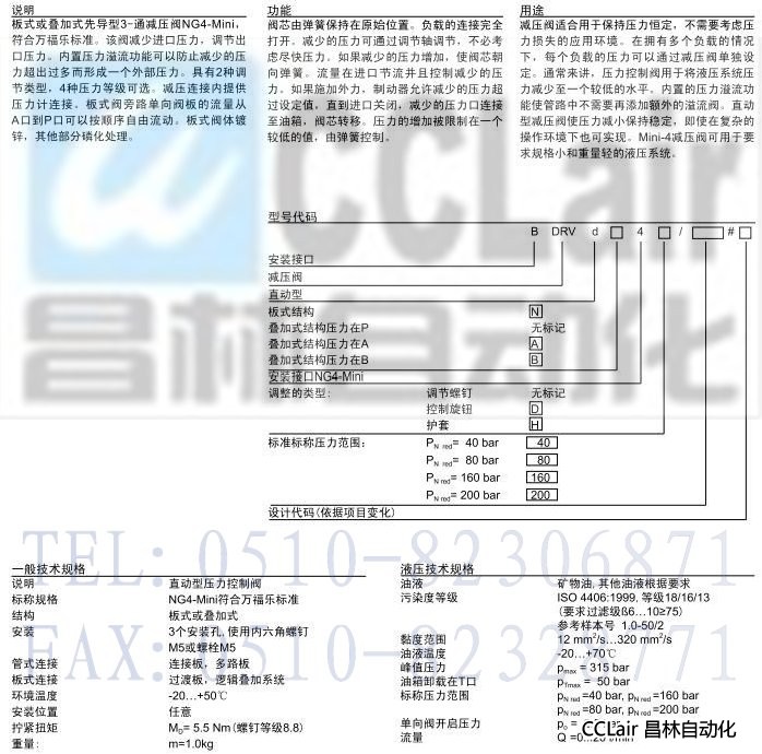BDRVdN4,BDRVd4,BDRVdA4,BDRVdB4,直动式减压阀板式和叠加式结构