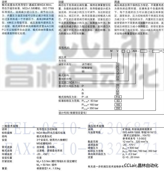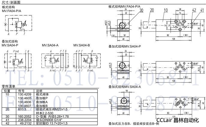 MV.FA04-P/A,MV.SA04-P,MV.SA04-A,MV.SA04-B,先导式减压阀板式和叠加式结构