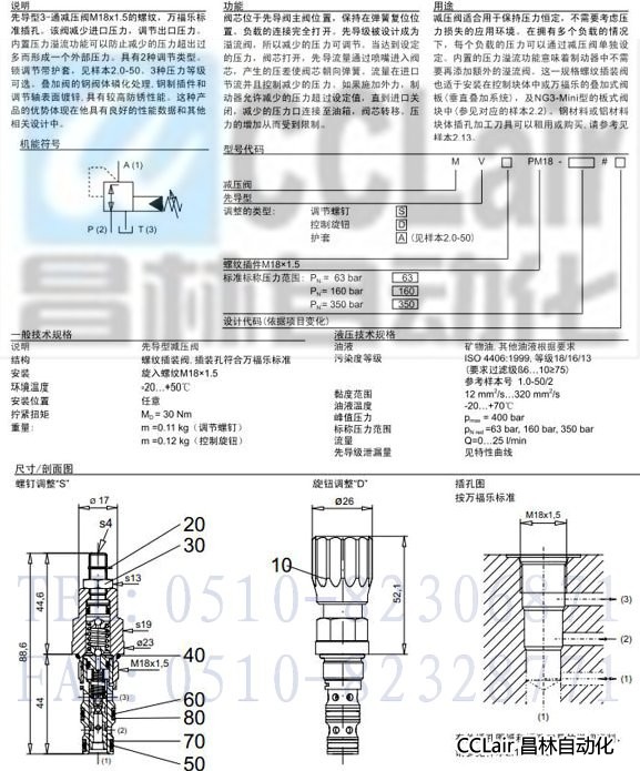 MVSPM18-160,MVDPM18-63,先导式减压插装阀