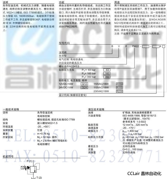 BVEPM22-350,BVEPM22-63,BVEPM22-160,先导式电磁压力溢流插装阀