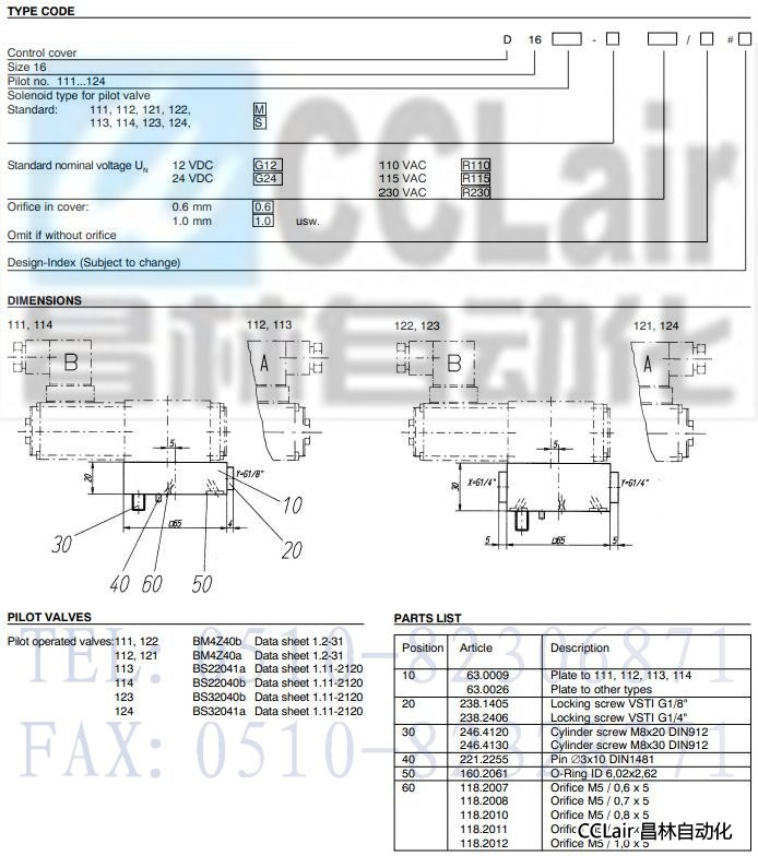 D16111M,D16113S,带换向功能的2位2-通插装阀