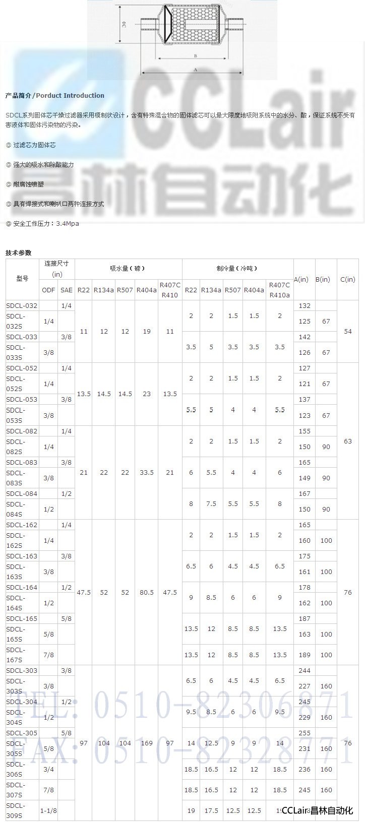 SDCL-032,SDCL-032S,SDCL-052,SDCL-052S,固体芯干燥过滤器