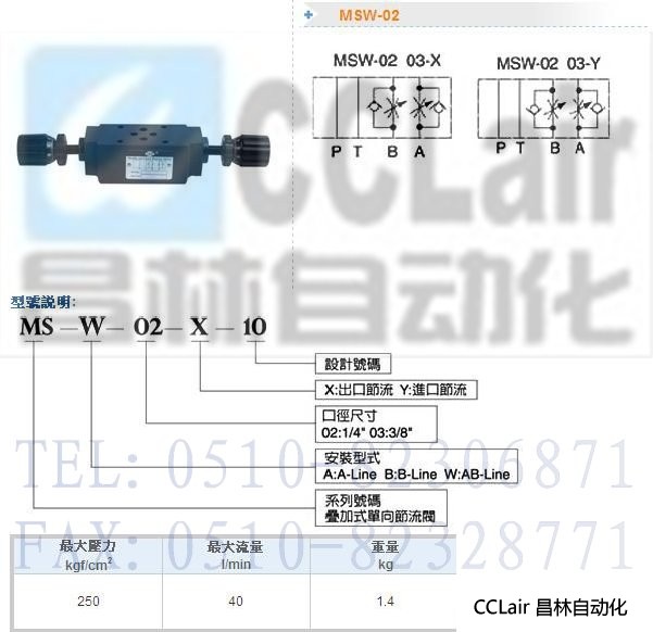 MSW-02-X-10,MSW-02-Y-10,疊加式單向節流閥