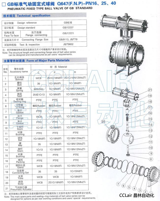 Q647F-16,Q647F-25,Q647F-40,标准气动固定式球阀