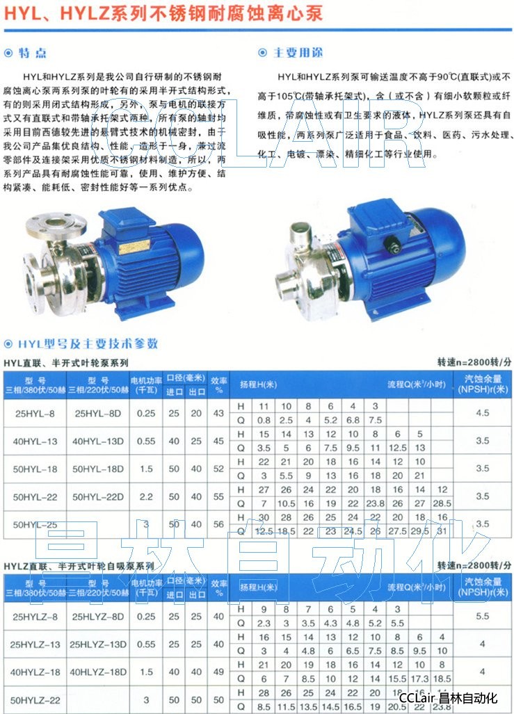 25HYL-8,40HYL-13,50HYL-18,50HYL-22,50HYL-25,不锈钢耐腐蚀自吸离心泵
